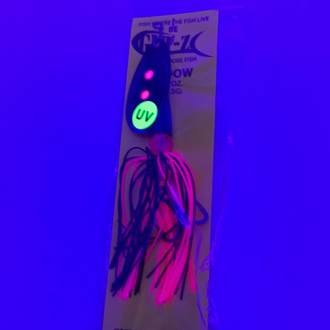 Gut-Z Widow 1/2 Black Black Blade Pink Dot Spinner Bait